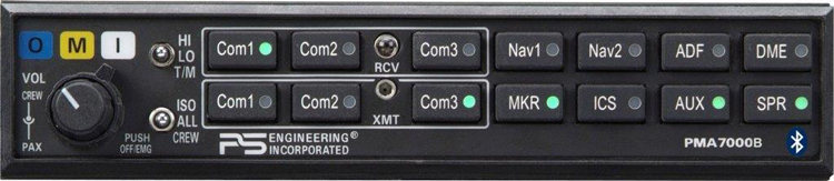 FAA TSO’d for Certified Aircraft The PMA7000BT is a direct slide-in replace to the PMA7000 series as well as UPS-AT SL-15 and KMA-28. This means that all that is required to replace your old audio panel with this brand new panel is a 3/32 Allen Wrench! The PMA7000BT is a hi-fi stereo intercom system and incorporates our renown 6-place IntelliVox® automatic Voice Operated Relay (VOX) intercom system. Adjusting a squelch circuit is a thing of the past. And with over 18 years of field experience, find out just how easy it is to forget you are even using an intercom, it just works! No more clipping or missed syllables. And the Bluetooth(R) Interface does allow music streaming as well as interconnect to an iPhone, iPad, iPod, or any other Bluetooth(R) enabled device that has the Handsfree or A2DP profile.